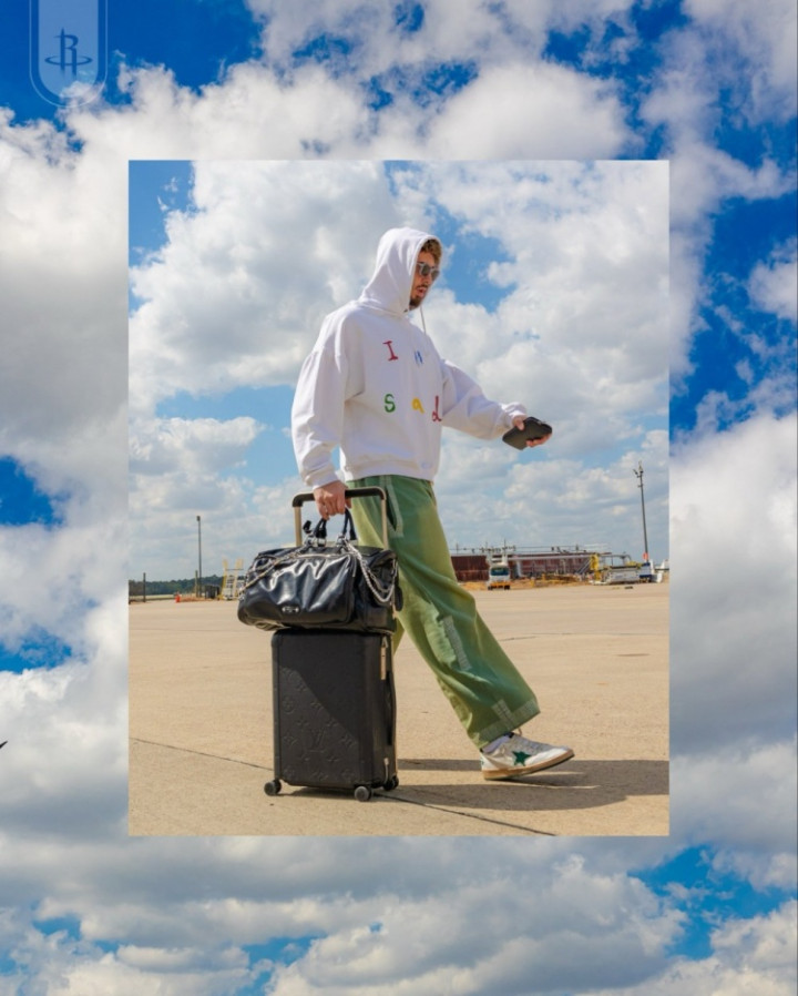 盈鑫惠 火箭众将登机帅照: 杜兰特头戴绿色小帽 申京连帽T恤可爱风